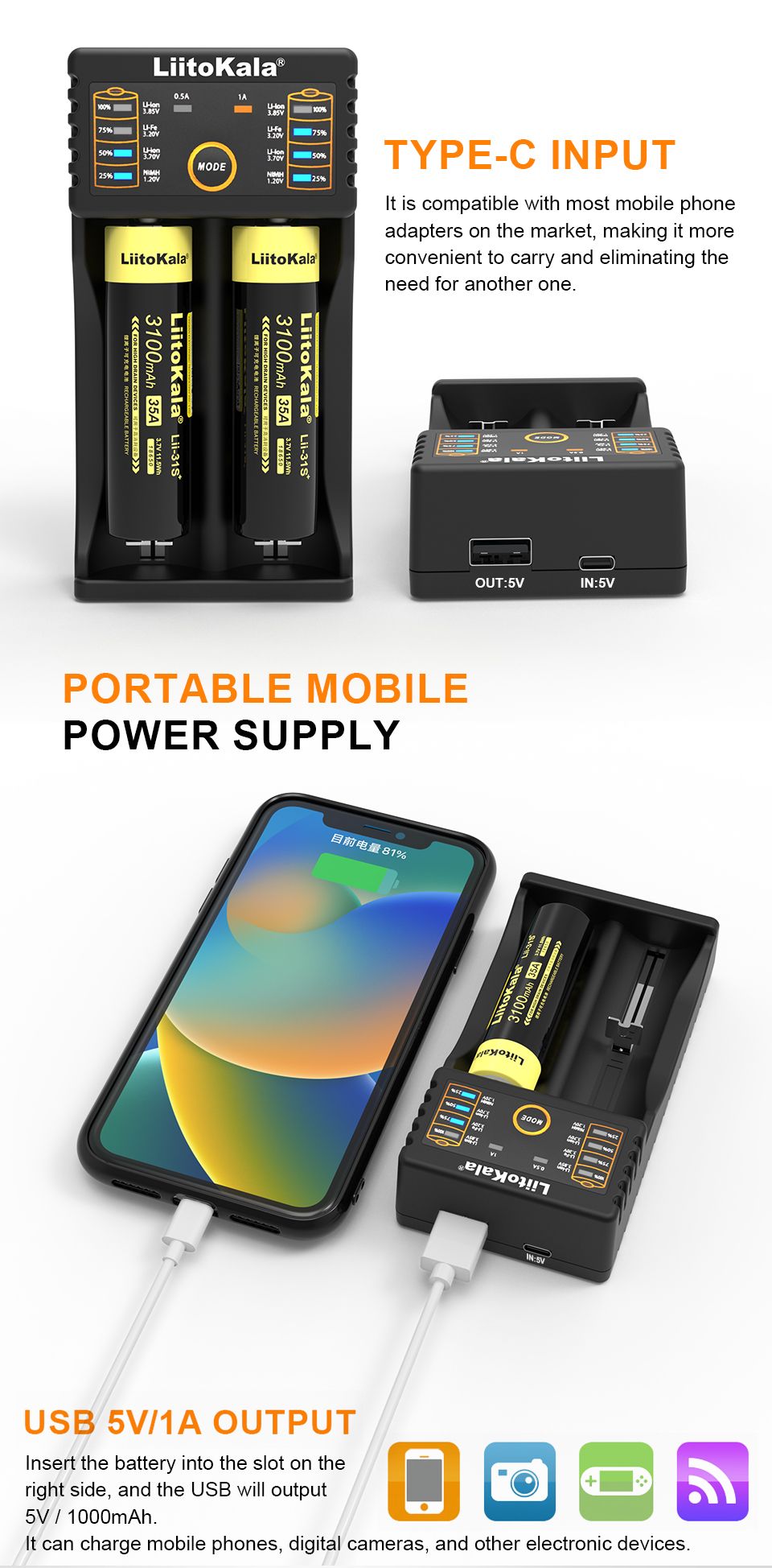 - Polyvalent : Compatible avec les batteries 18650, ce chargeur est idéal pour une variété d’applications électroniques.